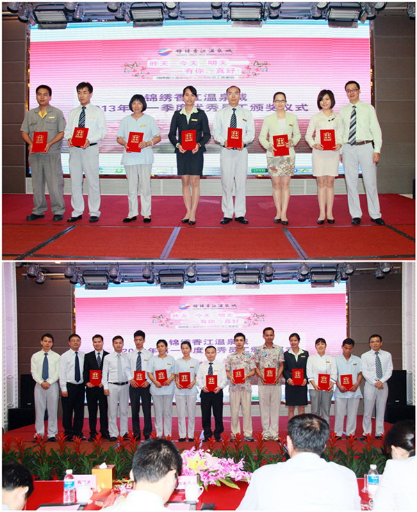 有時(shí)候,愛(ài)其實(shí)是一種感恩,感恩便是用心珍惜曾經(jīng)經(jīng)歷的,把握現(xiàn)在擁有的一切。今天酒店所有員工歡聚一堂,感恩與分享,感謝在錦繡香江溫泉城的日子里我們獲得成長(zhǎng)。值此之日,酒店常務(wù)副總經(jīng)理韓本寧先生為第一季度酒店優(yōu)秀員工,各部門(mén)負(fù)責(zé)人為第一季度部門(mén)優(yōu)秀員工頒獎(jiǎng),感謝在錦繡香江溫泉城每一個(gè)崗位上默默付出的同仁。