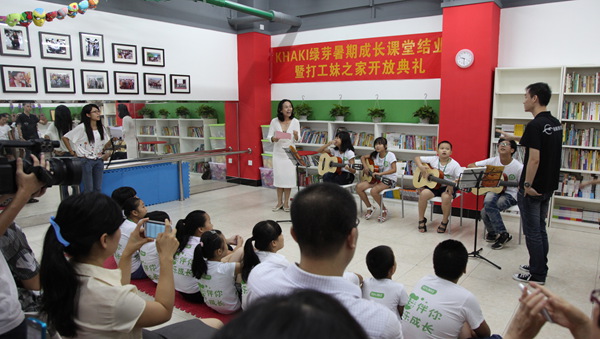 8月3日,一個(gè)特殊的結(jié)業(yè)典禮在廣州赤崗的綠芽基金會(huì)活動(dòng)中心舉行。20多名外來(lái)工子弟在這里系統(tǒng)地學(xué)習(xí)了小公民教育、青春期關(guān)愛、自我管理、興趣開發(fā)等課程。這個(gè)留守孩子暑期成長(zhǎng)課堂,讓“小候鳥”們?cè)诎滋煊辛四軐W(xué)到東西的一個(gè)“落腳點(diǎn)”,讓參與的孩子過上一個(gè)不再孤單而又豐富多彩的假期。小朋友們表演了吉他彈唱、舞蹈、詩(shī)歌朗誦等節(jié)目,贏得了在場(chǎng)嘉賓和媒體、家長(zhǎng)代表的陣陣掌聲。