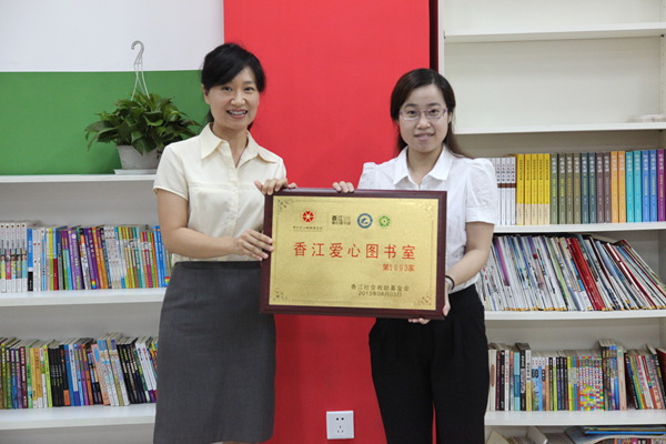 綠芽暑期成長(zhǎng)課堂結(jié)業(yè)典禮上,香江社會(huì)救助基金會(huì)副秘書長(zhǎng)龍翠婷向綠芽基金會(huì)代表授牌,第1093間香江愛心圖書室正式落戶廣州赤崗的綠芽基金會(huì)活動(dòng)中心。這也是香江愛心圖書館項(xiàng)目進(jìn)入深圳和東莞等外來(lái)兒童聚居的大城市后,首次落戶廣州。