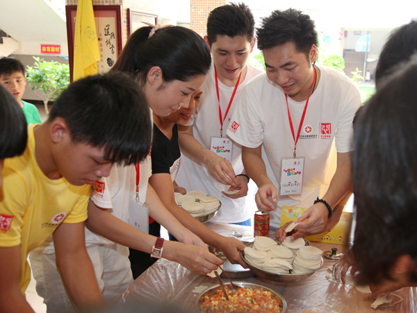 義工和孩子們組成了八個(gè)小家庭,家庭里的每個(gè)人都有各自的角色,每個(gè)家庭都有一張任務(wù)卡,家庭成員通過(guò)分工合作,共同體驗(yàn)了包餃子比賽、爬山等游戲。28日晚上,一場(chǎng)別開生面的聯(lián)歡晚會(huì)再一次拉近了義工和孩子們的距離,為了展示各自的小家庭,大家紛紛利用各種閑暇時(shí)間出點(diǎn)子、勤排練,原本還有些生疏的“家人”,很快就熱乎了起來(lái),汗水和歡笑揮灑在福利中心的每一個(gè)角落里。