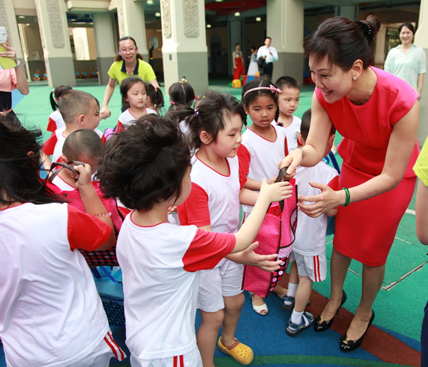 在參觀園區(qū)時(shí),翟美卿來(lái)到了正在唱歌、跳舞、做游戲的孩子們當(dāng)中,共同分享他們的快樂(lè),孩子們還爭(zhēng)先向“翟媽媽”展示自己的畫(huà)作。翟美卿非常重視學(xué)前教育,本次慰問(wèn)中為孩子們準(zhǔn)備了一份特別的禮物——香港ICAN全人教育。當(dāng)天,來(lái)自全人教育機(jī)構(gòu)的培訓(xùn)總監(jiān)陳瑞冰博士為老師和家長(zhǎng)們帶來(lái)了一堂生動(dòng)的“全人教育”課,這也是“全人教育”的第一講,翟美卿親臨現(xiàn)場(chǎng)進(jìn)行體驗(yàn)。
