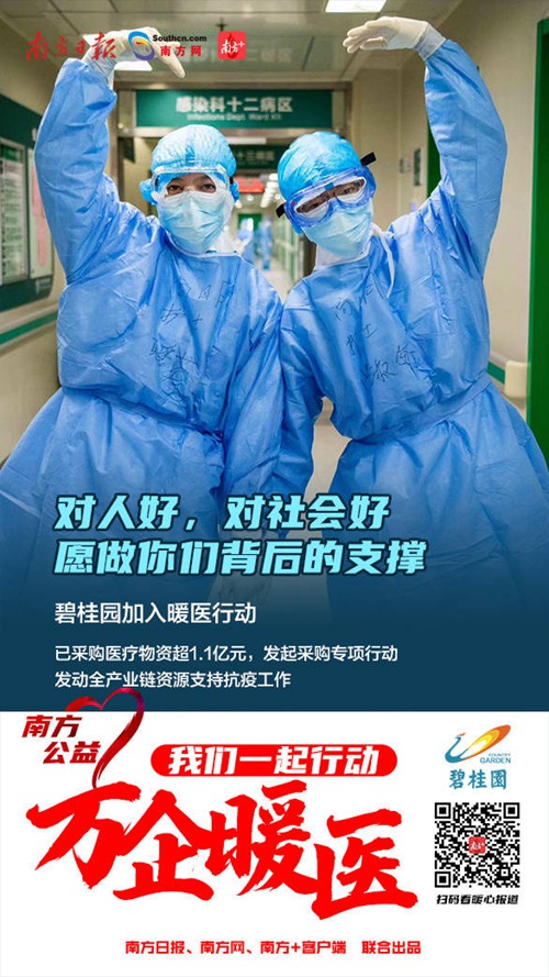 3月3日,南方日報、南方網(wǎng)、南方+客戶端正式啟動“萬企暖醫(yī)——我們一起行動”公益活動,旨在聯(lián)合社會力量用實際行動為奮戰(zhàn)抗疫一線醫(yī)務人員及家屬解難事、幫家事。同時發(fā)揮媒體平臺連接、傳播價值,匯聚社會力量為打贏疫情防控戰(zhàn)役貢獻廣東媒體力量。