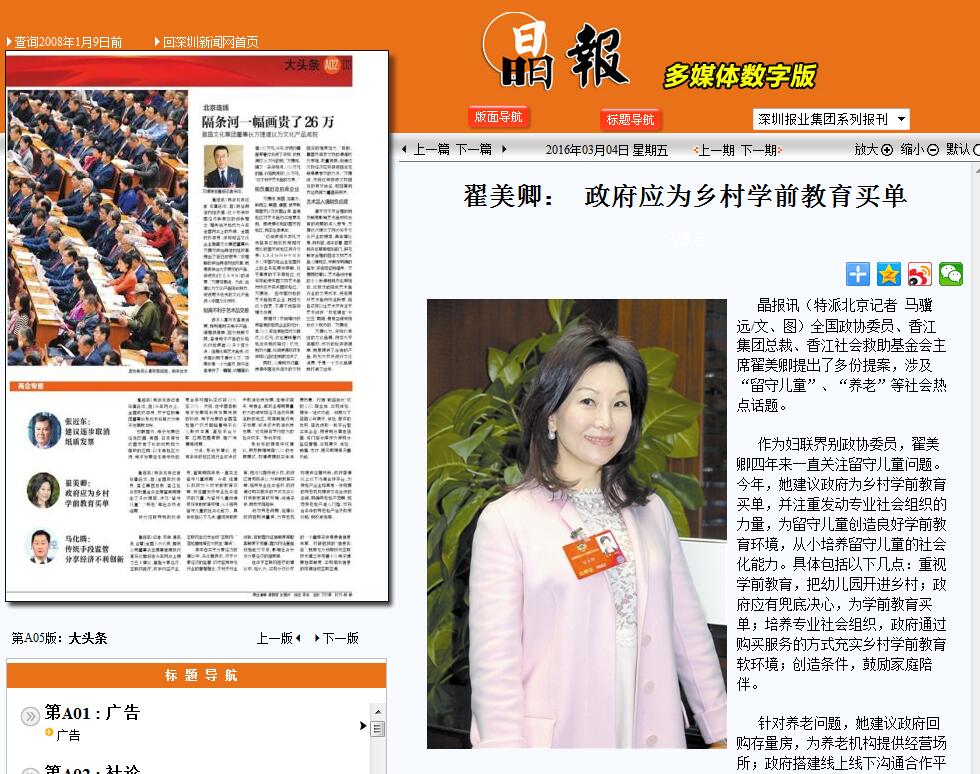 全國政協(xié)委員、香江集團總裁、香江社會救助基金會主席翟美卿提出了多份提案,涉及“留守兒童”、“養(yǎng)老”等社會熱點話題。