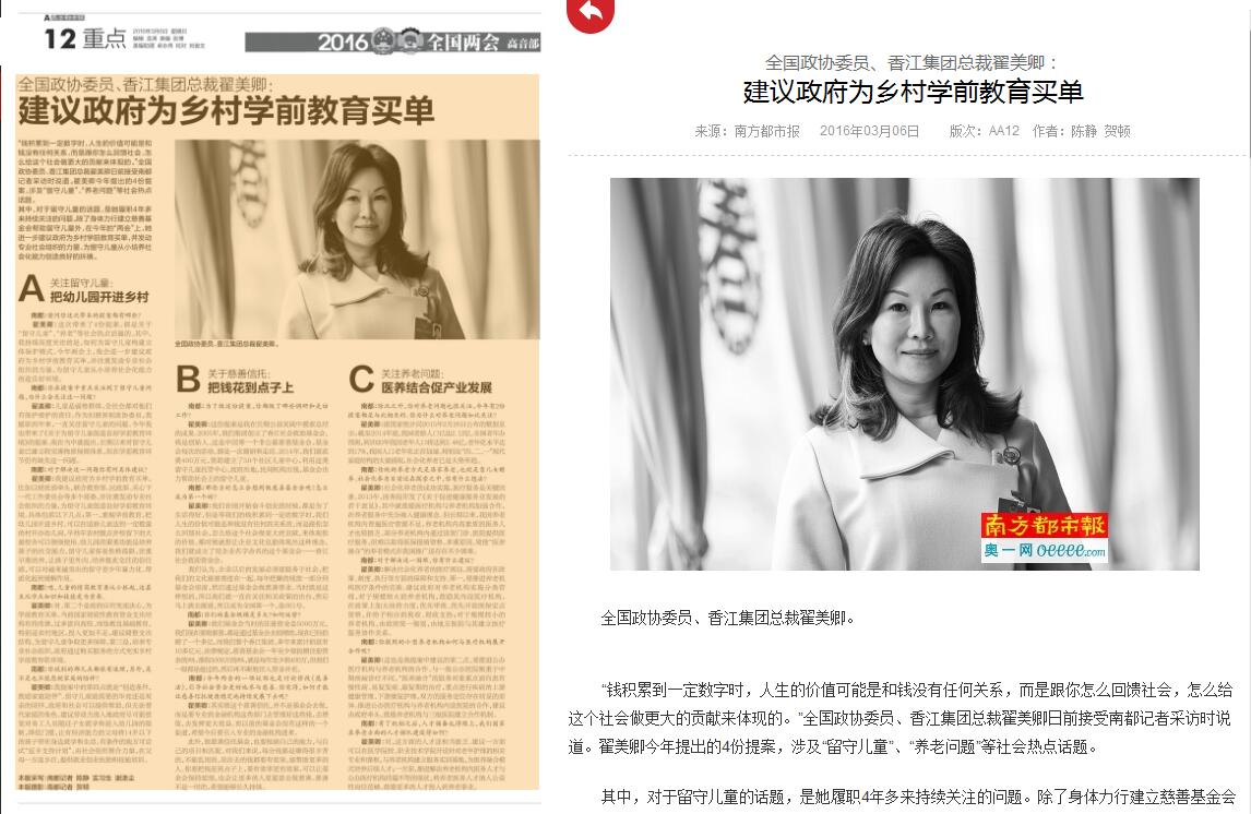 “錢(qián)積累到一定數(shù)字時(shí),人生的價(jià)值可能是和錢(qián)沒(méi)有任何關(guān)系,而是跟你怎么回饋社會(huì),怎么給這個(gè)社會(huì)做更大的貢獻(xiàn)來(lái)體現(xiàn)的!比珖(guó)政協(xié)委員、香江集團(tuán)總裁翟美卿日前接受南都記者采訪時(shí)說(shuō)道。翟美卿今年提出的4份提案,涉及“留守兒童”、“養(yǎng)老問(wèn)題”等社會(huì)熱點(diǎn)話題。